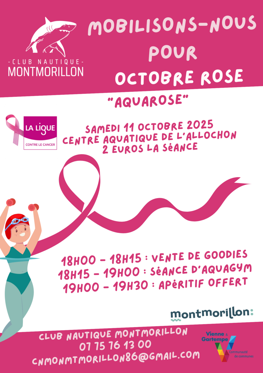 💗 Octobre Rose passe aussi par le sport : venez partager un moment de bien-être et de solidarité avec notre séance d’aquagym dédiée à la lutte contre le cancer du sein.